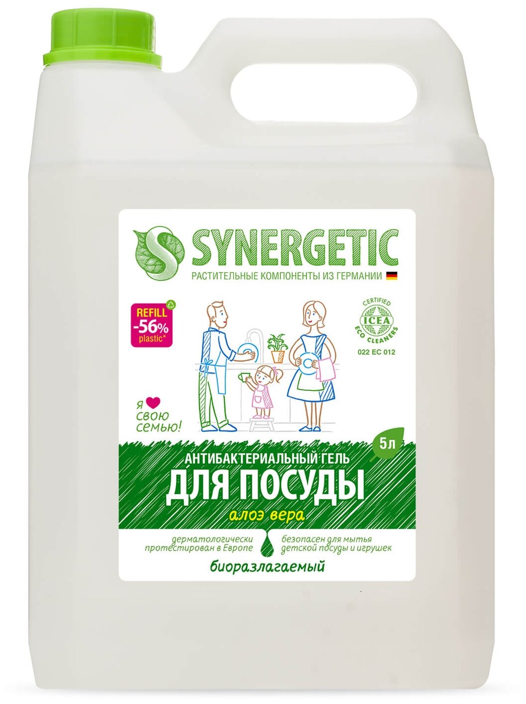 Гель для мытья посуды антибактериальный 5 л, SYNERGETIC "Алоэ", канистра, 103503 (арт. 608276)