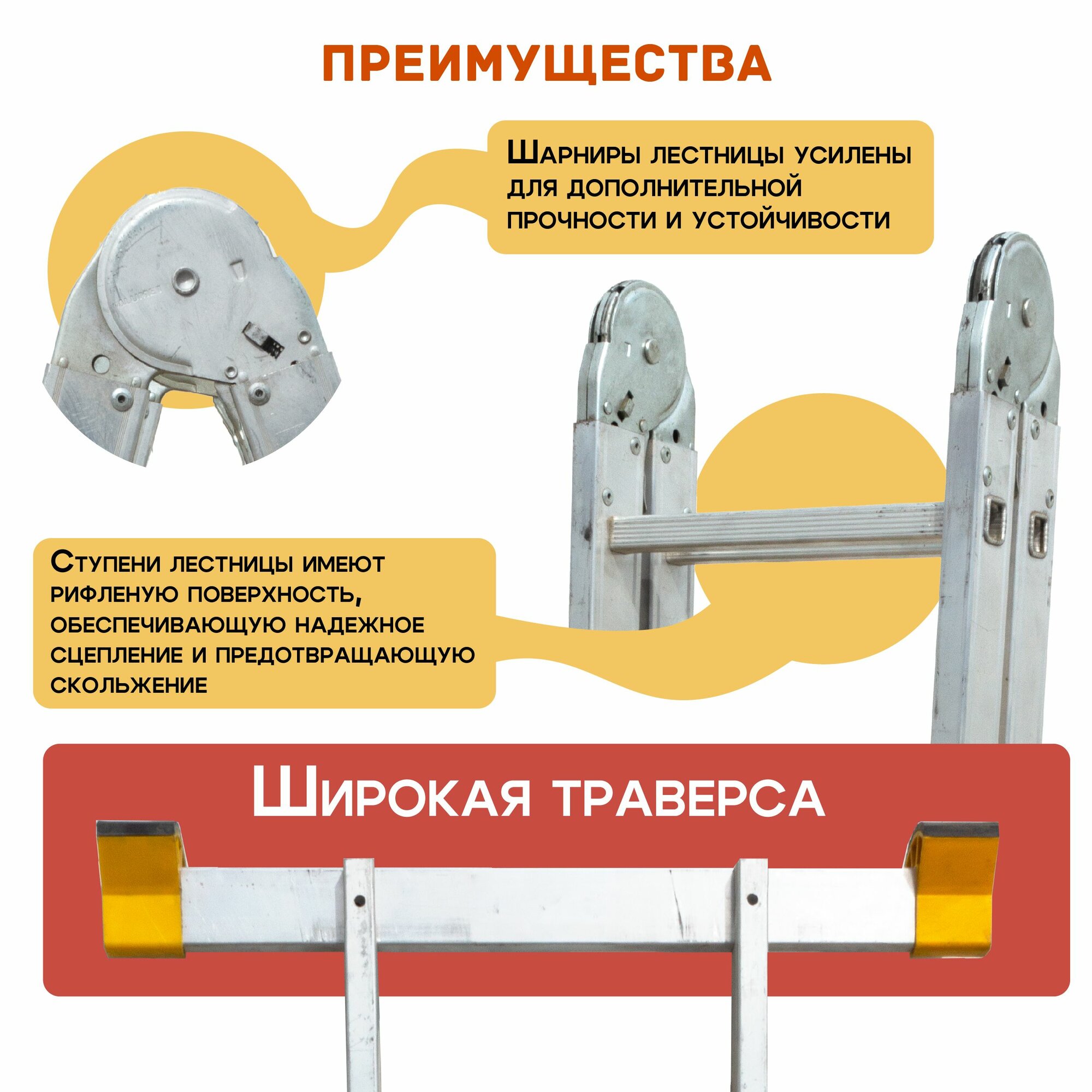 Новая высота Лестница-трансформер 3-х секционная 3×7 ступеней, 3×1,9 м, высота 4,5 м, нагрузка 150 кг, алюминий, новая высота
