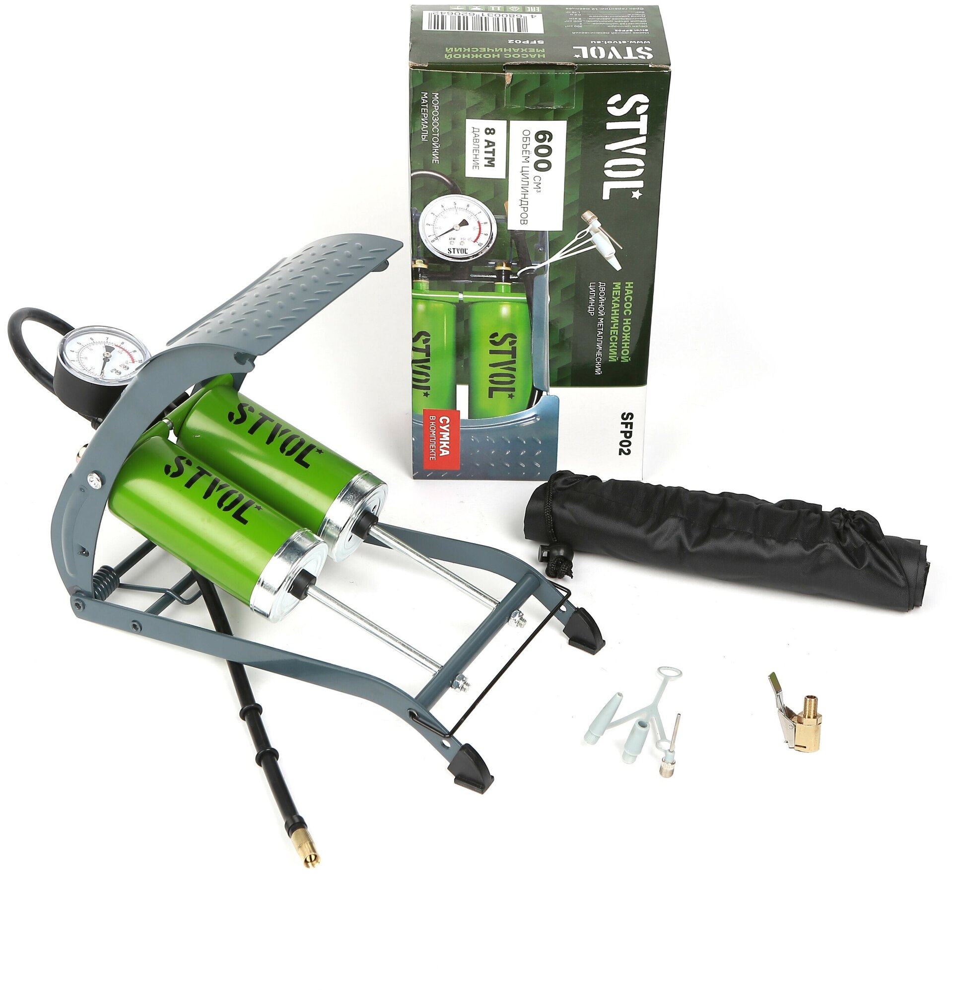 STVOL SFP02 Насос ножной механический STVOL двойной цилиндр 600 см3 накидной патрон сумка