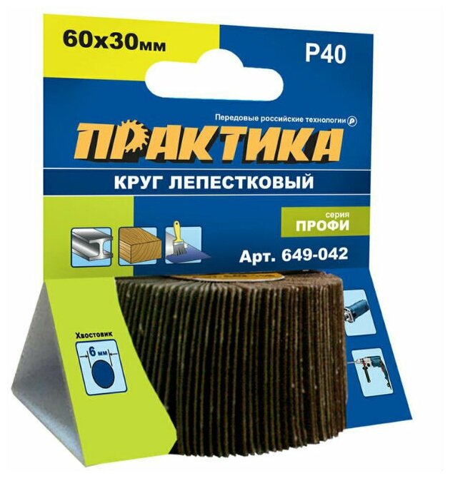 Круг лепестковый с оправкой 60х30мм, P 40, хвостовик 6 мм, серия Профи ПРАКТИКА 649-042 интересное: