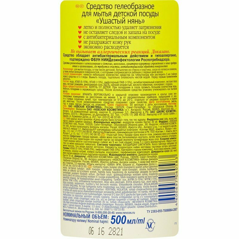 Ушастый нянь Гель для мытья детской посуды, 500 мл