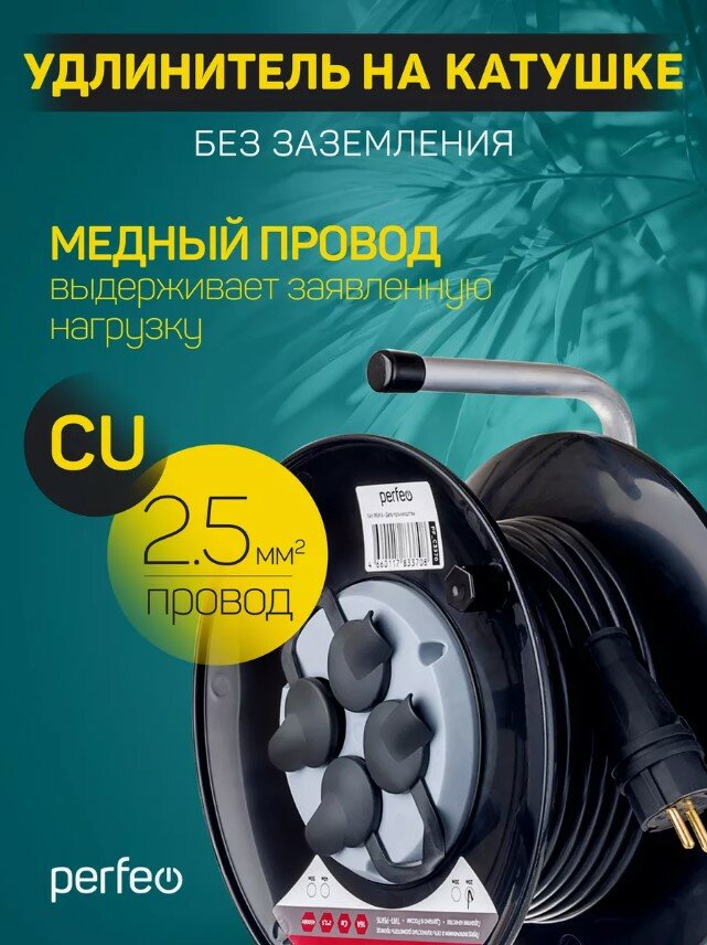 Удлинитель на катушке Perfeo без заземления "RU POWER" 20м 4гн 16А ПВС 2х2,5 IP44 (PF_C3370) интересное: