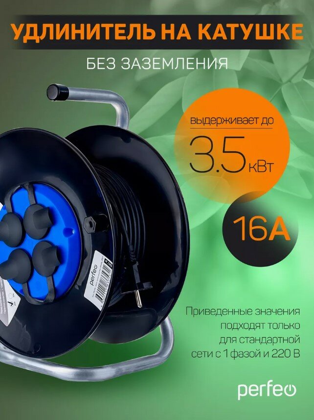 Удлинитель на катушке Perfeo без заземления "RU POWER" 40м 4гн 16А ПВС 2х1,5 IP44 (PF_C3368) интересное: