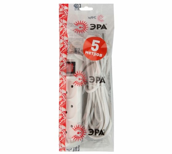 Купить Удлинитель электрический ЭРА U-3s-5m-2x1 без заземления c выключателем 3 розетки 5м ПВС 2x1мм2 10А