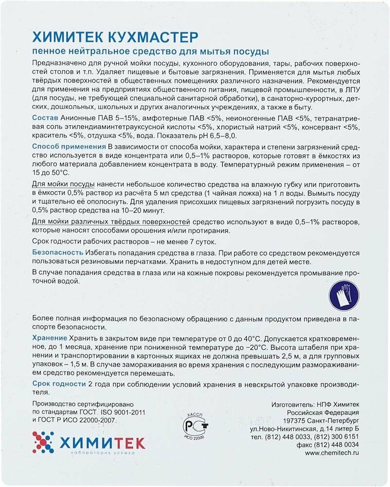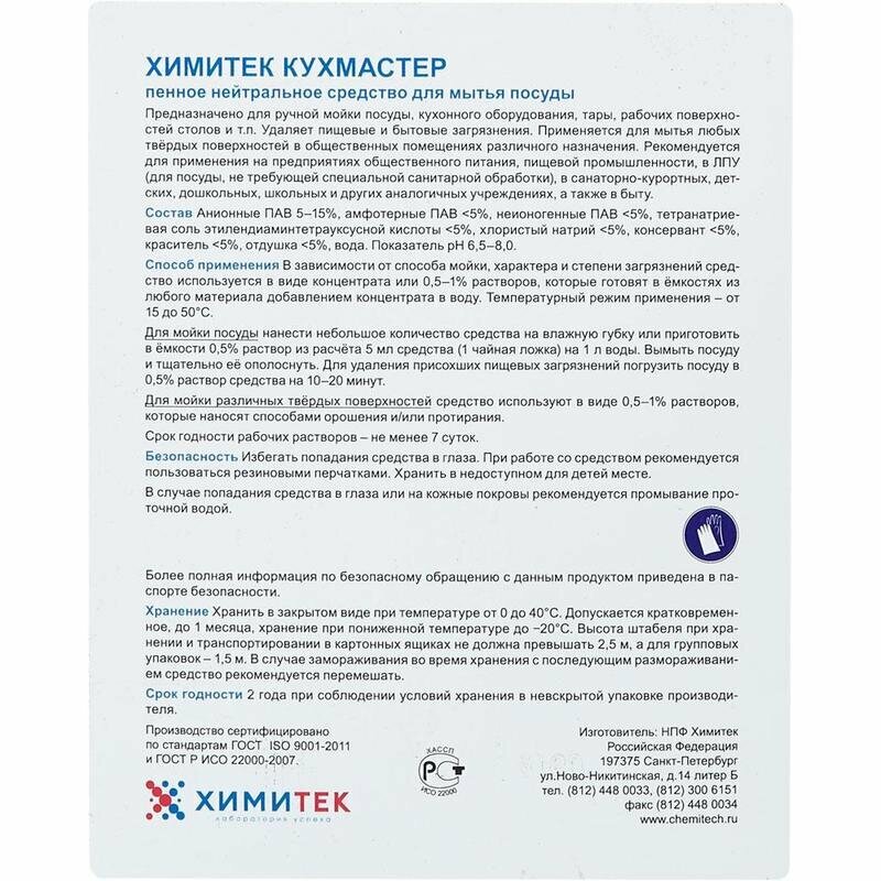Химитек Кухмастер 5л, средство для мытья посуды, холодильника, столов, тары, гипоаллергенное