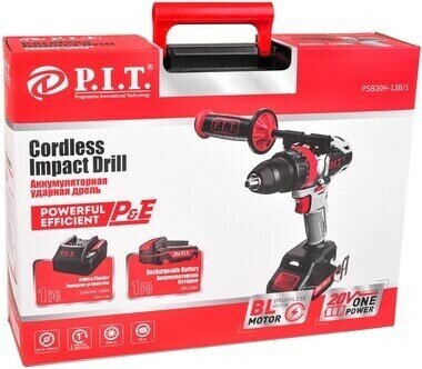 Аккумуляторная ударная дрель P. I. T бесщеточная PSB20H-13B SOLO (20В, 75Нм, метал патр13мм, 2ск, коробка)