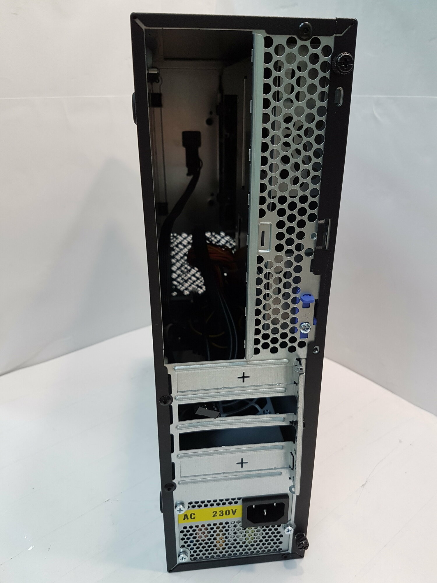 | Минусы: | Если оставить салазки для установки внутренних накопителей, то нужно искать очень низкий кулер и ставить что-то совсем холодное. Штатный корпусной кулер на выдув, что при вертикальном положении, когда БП внизу, выглядит странно. Фиксаторы передней панели легко ломаются, поэтому дополнительно крепил переднюю панель на три винта. |