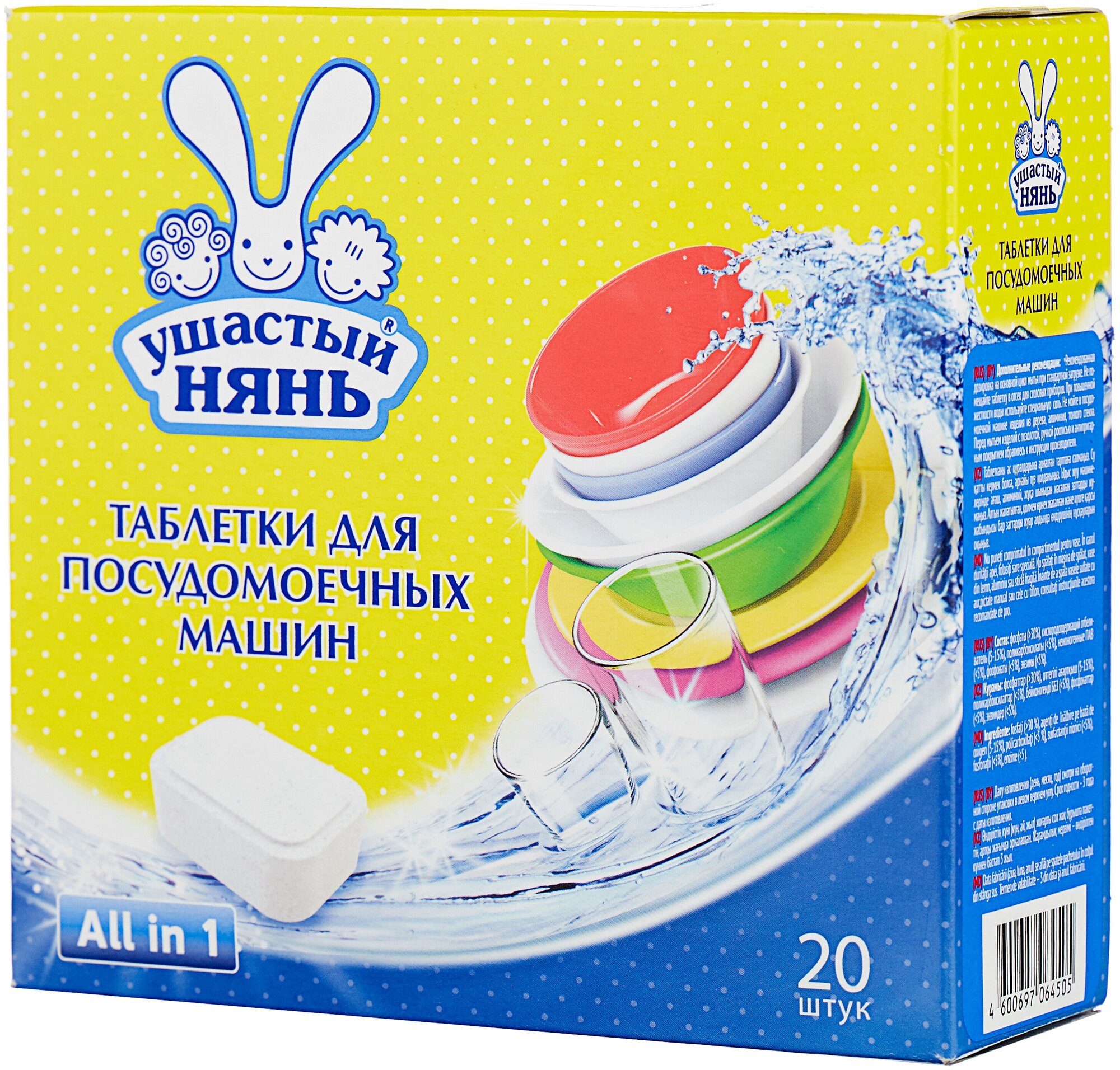 Таблетки для посудомоечной машины Ушастый Нянь All in 1 таблетки, 20 шт., коробка