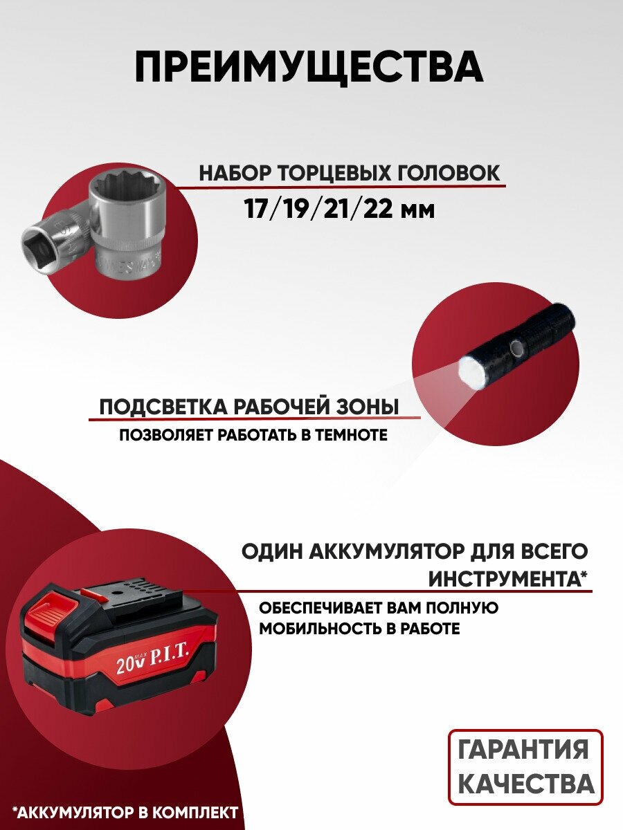 Аккумуляторный ударный гайковерт P. I. T. PIW20H-300A SOLO (без АКБ и ЗУ) интересное: