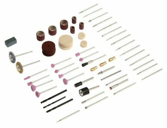 | Комплектация | гравер - 1 шт., кейс - 1 шт., гибкий вал - 1 шт., шлифовальные камни - 10 шт., алмазные насадки - 2 шт., оправа для шлифовальных лент - 1 шт., оправа для отрезных кругов - 1 шт., оправка для войлочных колес - 1 шт., отрезные круги - 8 шт., войлочные колеса - 4 шт., шлифовальные ленты - 4 шт., сверло - 2 шт., цанга - 2 шт., точечный камень - 1 шт., шлифовальный диск - 3 шт., гаечный ключ - 1 шт., L-штифт - 1 шт. |