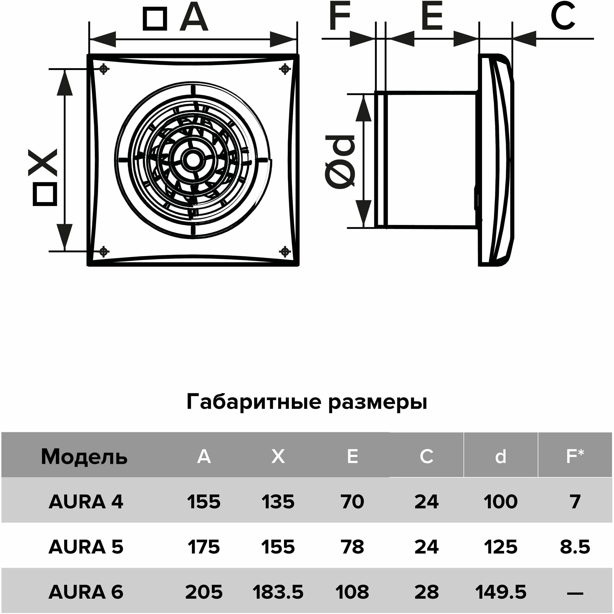 Вентилятор осевой вытяжной DiCiTi Aura 5C, с обратным клапаном, D 125, 10 Вт