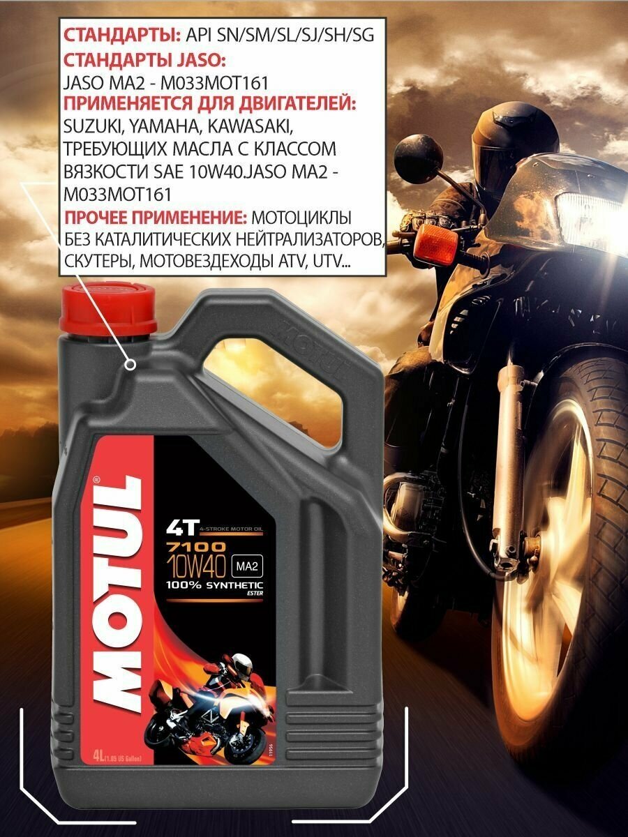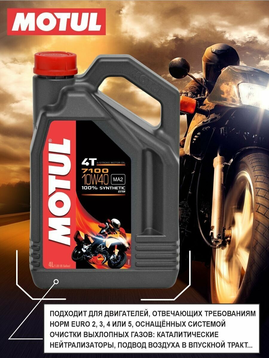 Масло для мотоциклов MOTUL 7100 10w40 синтетическое, API SN, JASO MA2, 4-тактное, 4л, арт. 104092