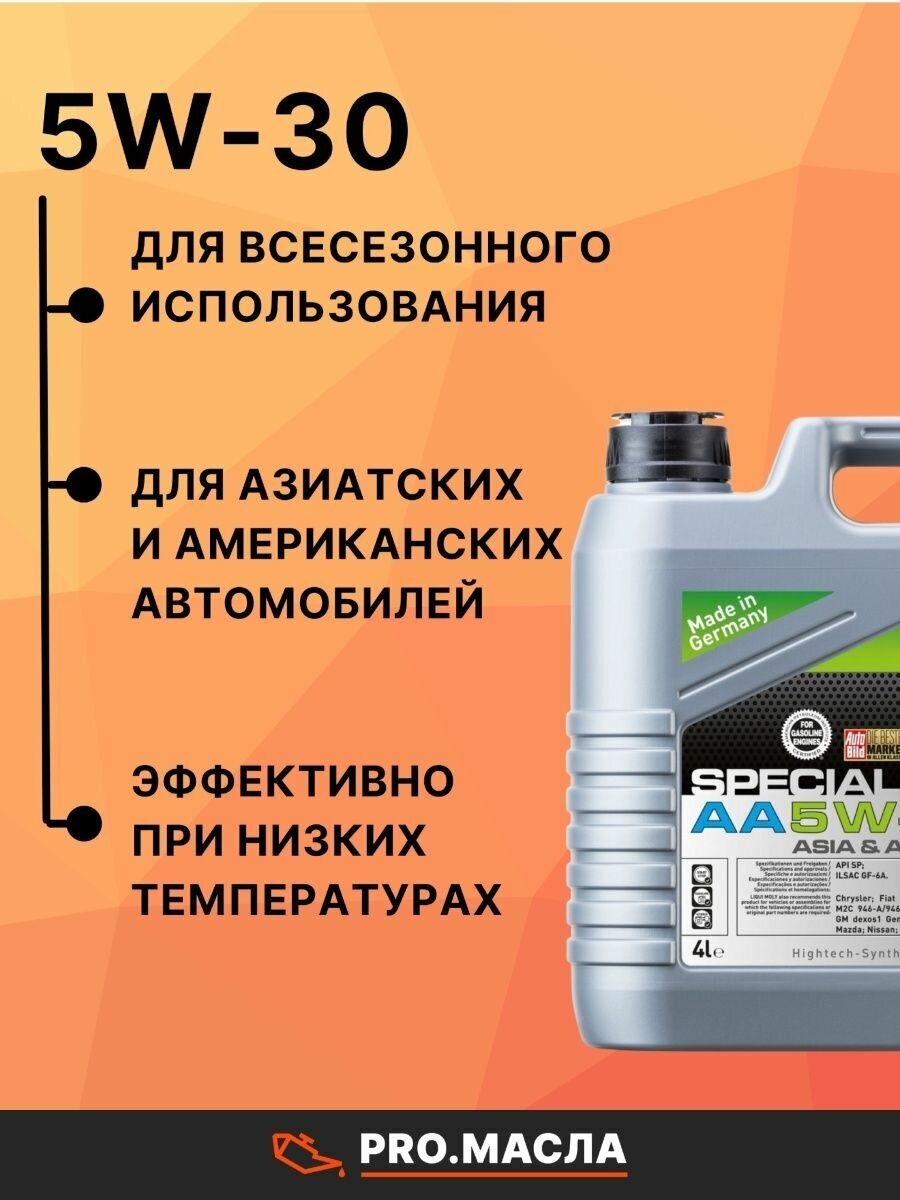 СохранитьМоторное масло LIQUI MOLY 5W-30 SPECIAL TEC AA SN синтетическое 4 л интересное:
