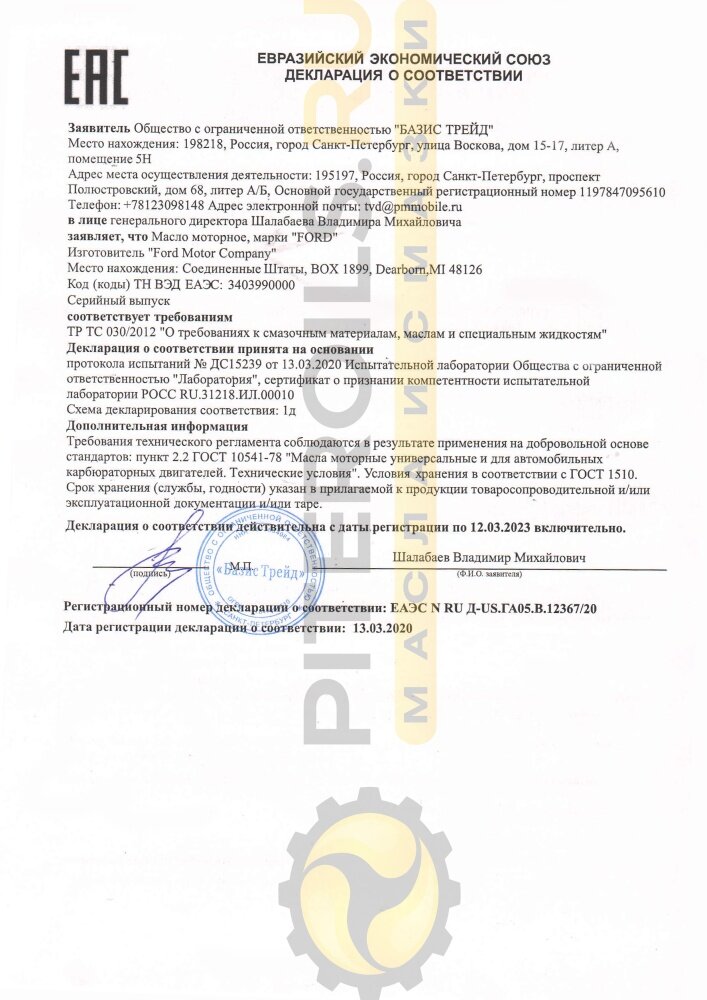 | Плюсы: | Отличное масло, для автомобилей Ford Motor Company и всех их дочерних предприятий самое то! |