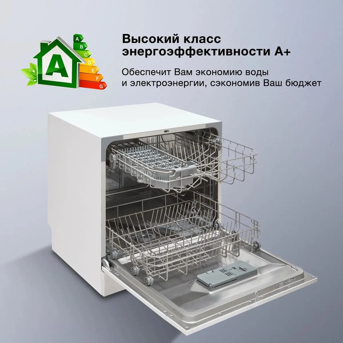 Посудомоечная машина компактная Hyundai DT505, Система защиты от протечек Aqua Stop, Белый