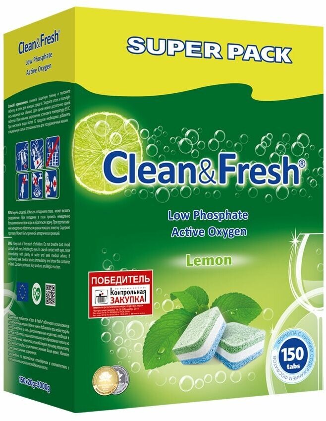 Clean & Fresh Таблетки для посудомоечной машины, 150 штук