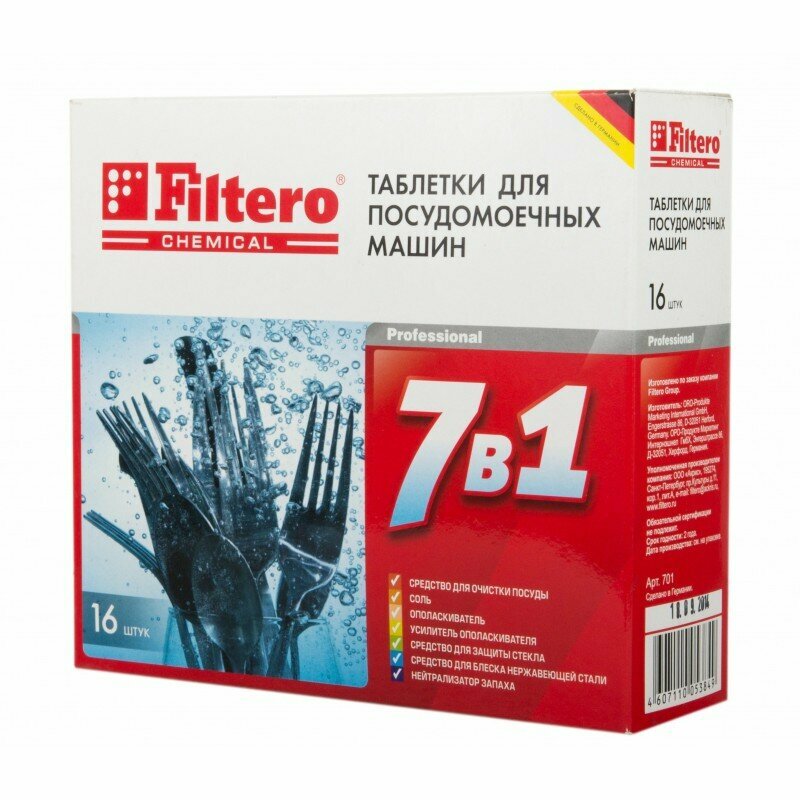 Filtero Таблетки для ПММ "7 в 1" 16 шт. в упак, Арт. 701