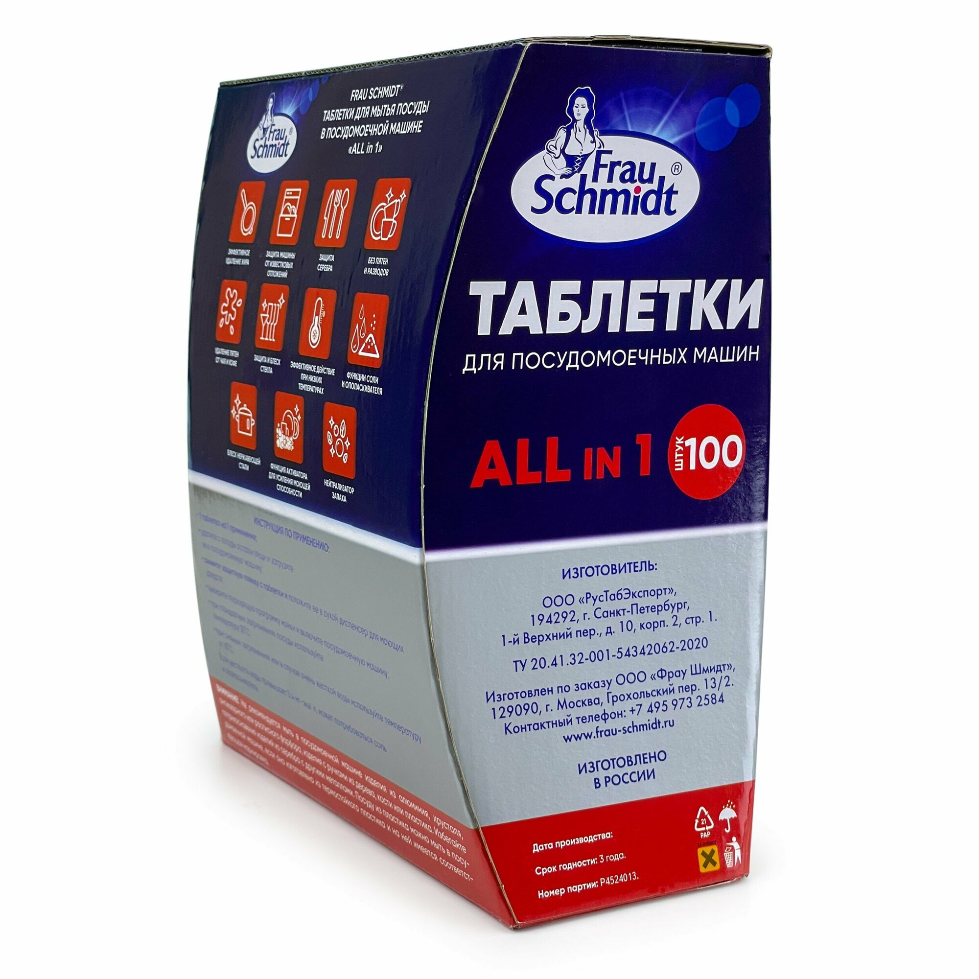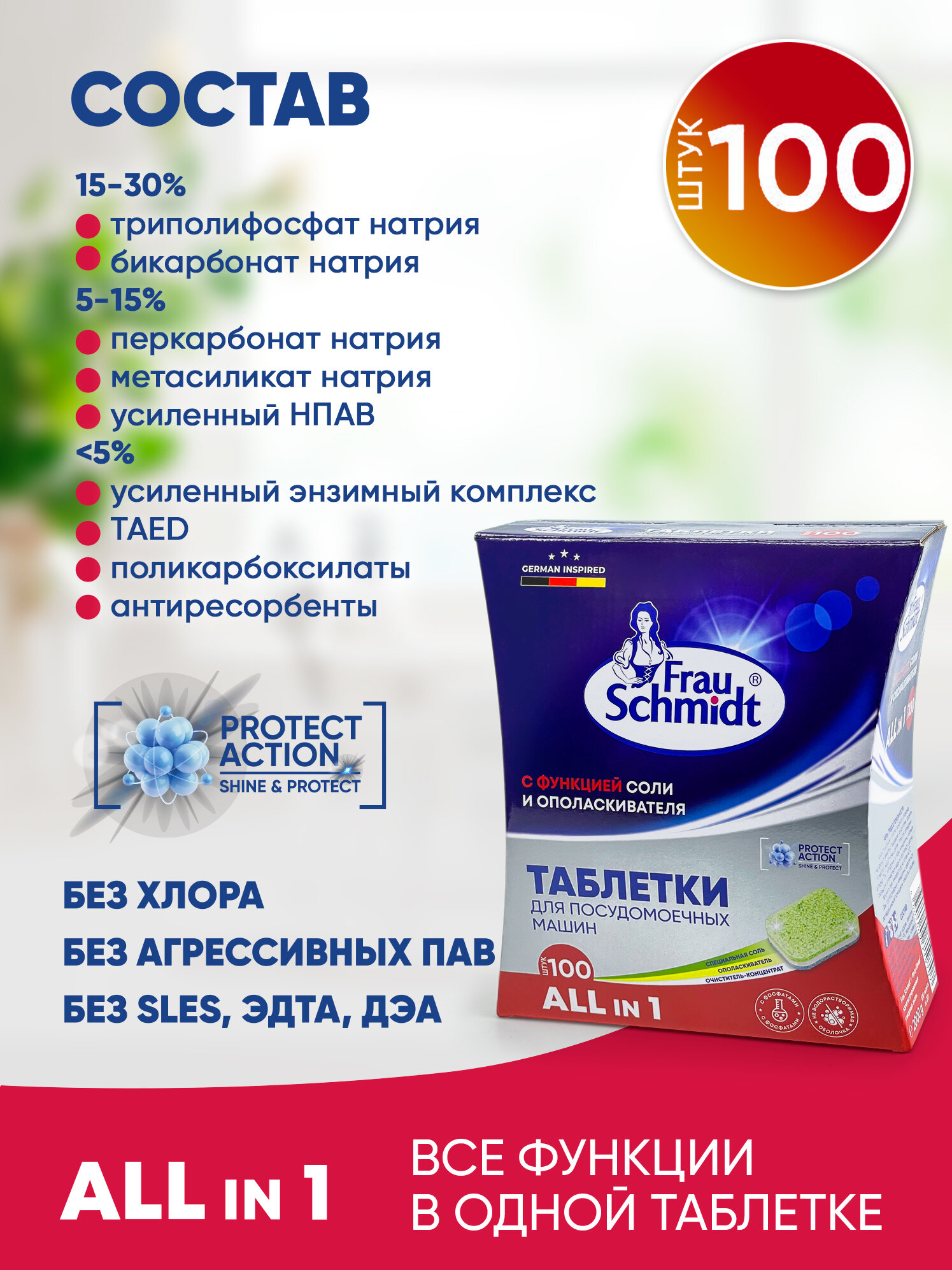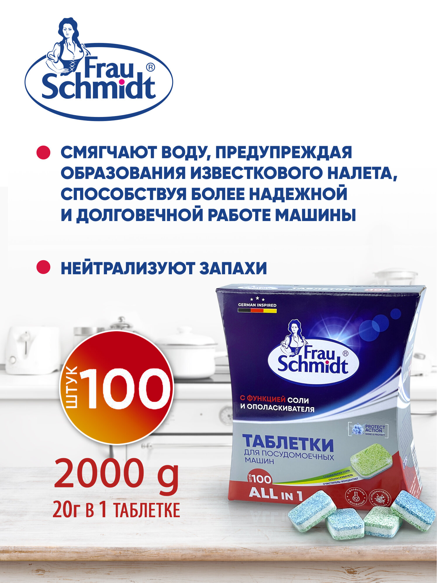 Купить Frau Schmidt Таблетки для посудомоечных машин "All in one" - 100 шт. (в коробке)