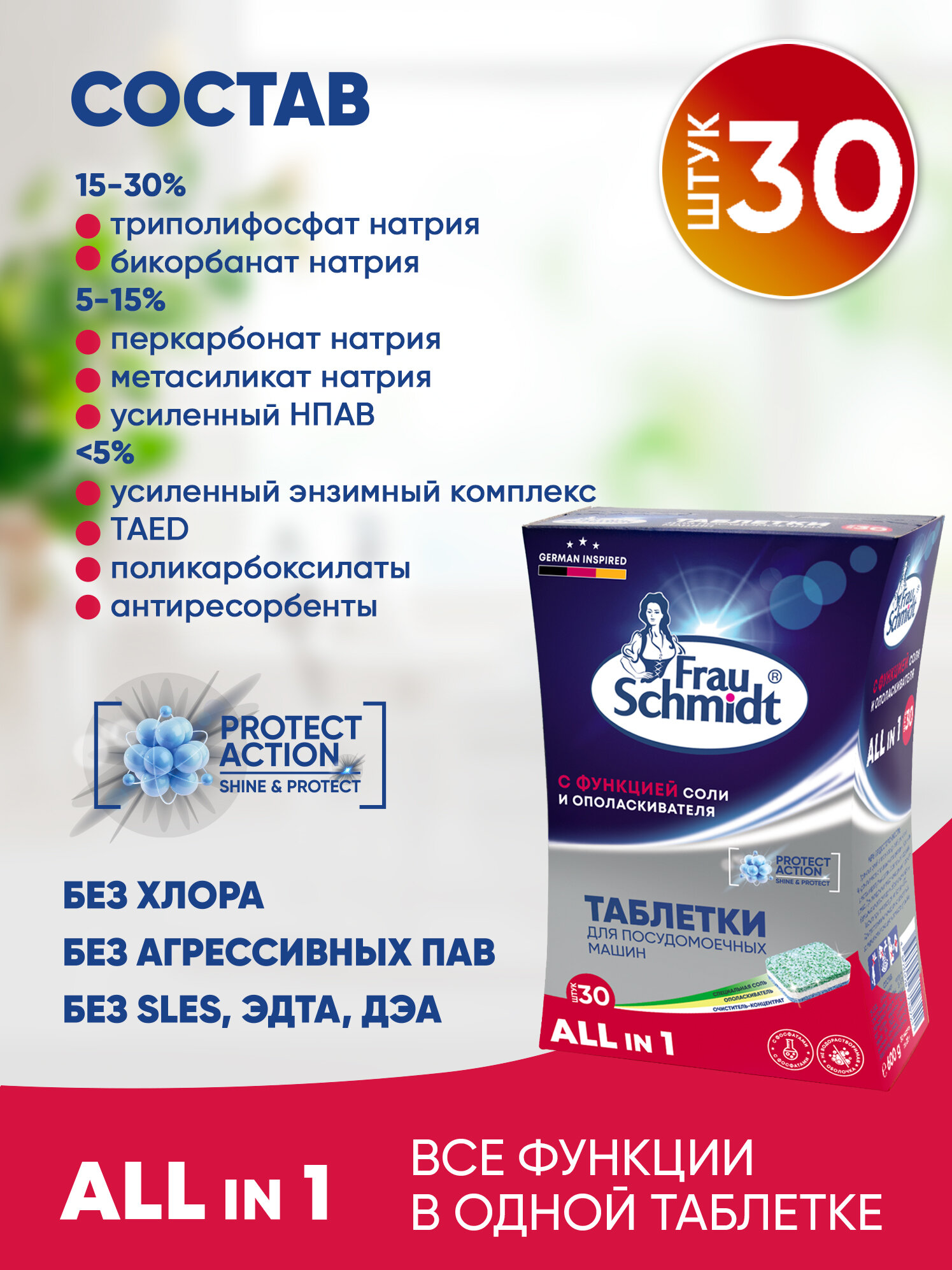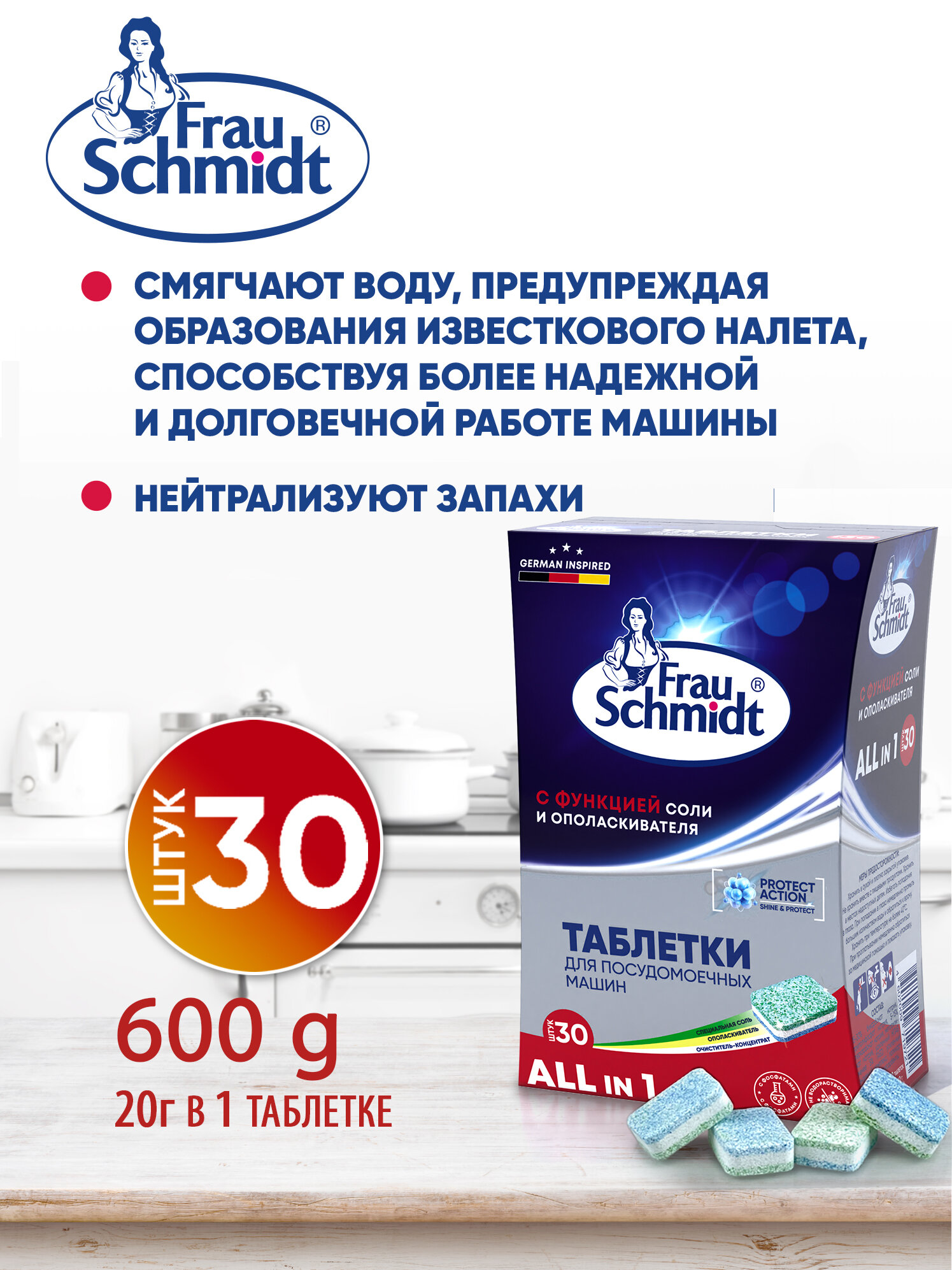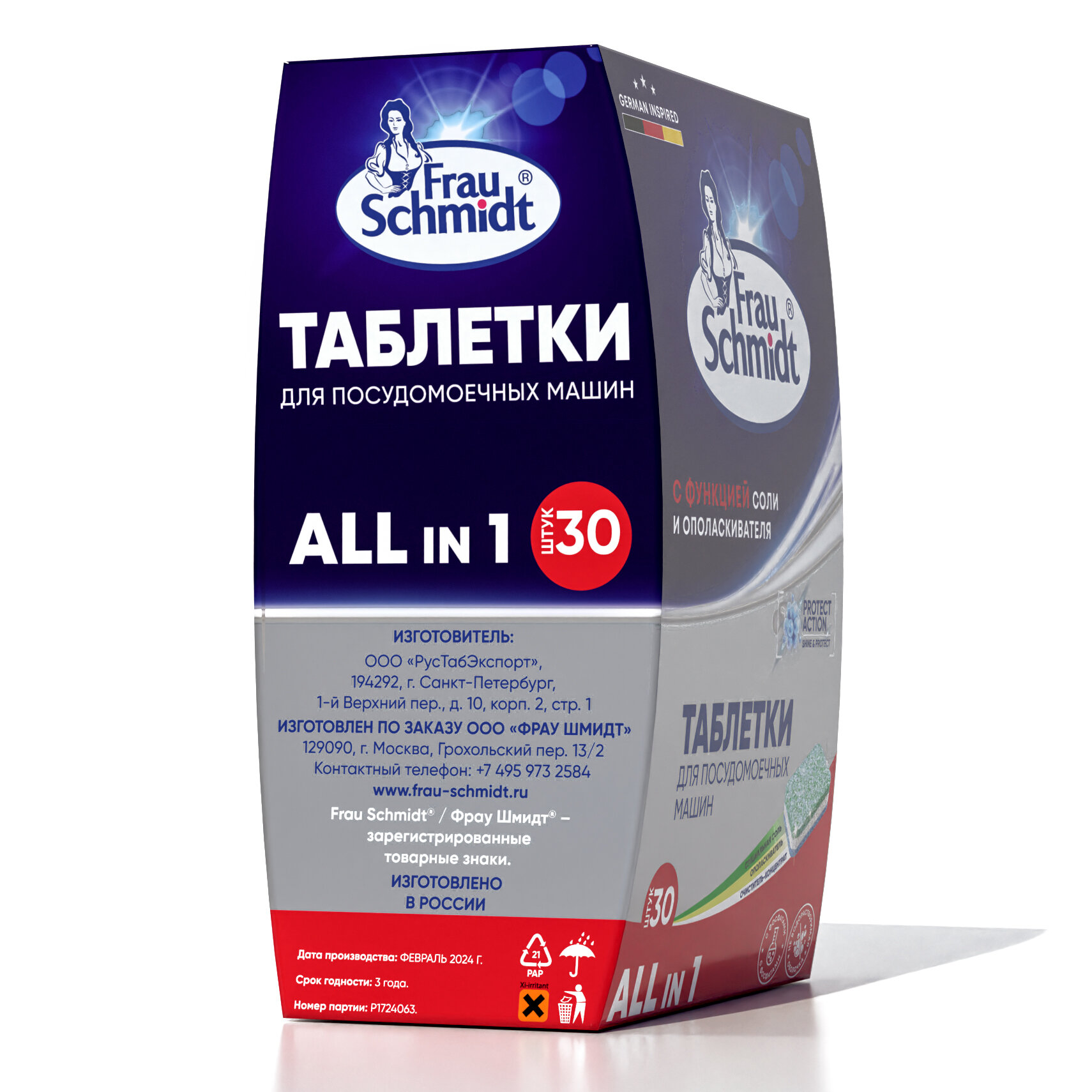Купить Frau Schmidt Таблетки для посудомоечных машин "All in one" - 30 шт. (в коробке)