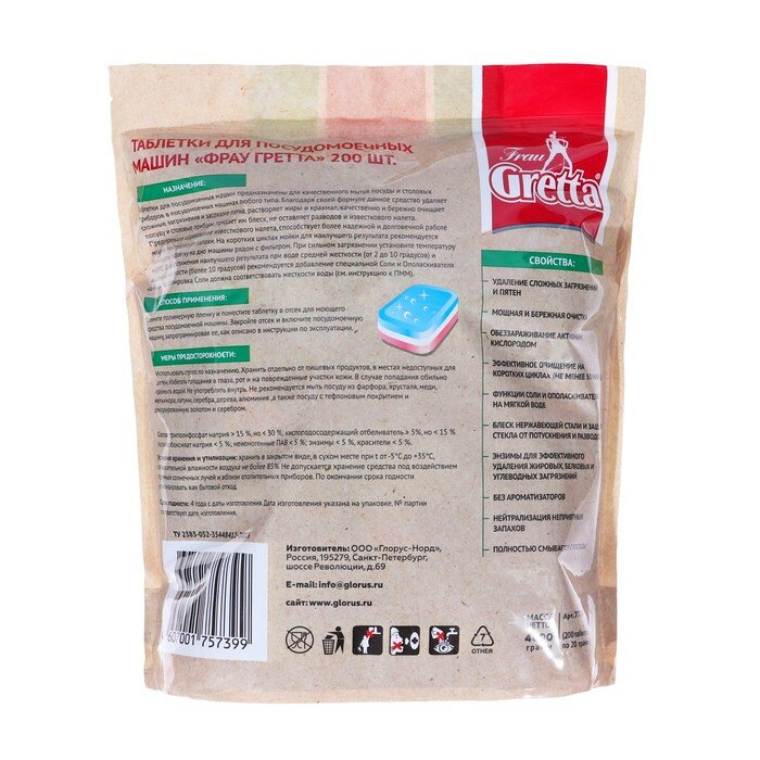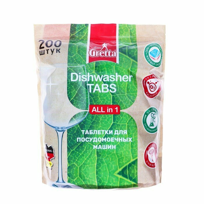 Купить Frau Gretta Таблетки для посудомоечных машин Frau Gretta 9 в1, 200 шт