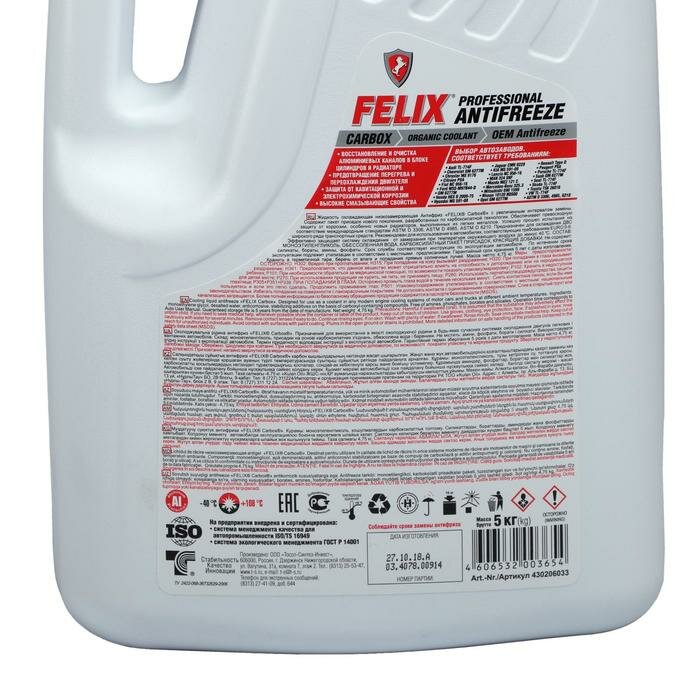 Антифриз FELIX Carbox-40 G12 ТС красный, 5 кг интересное: