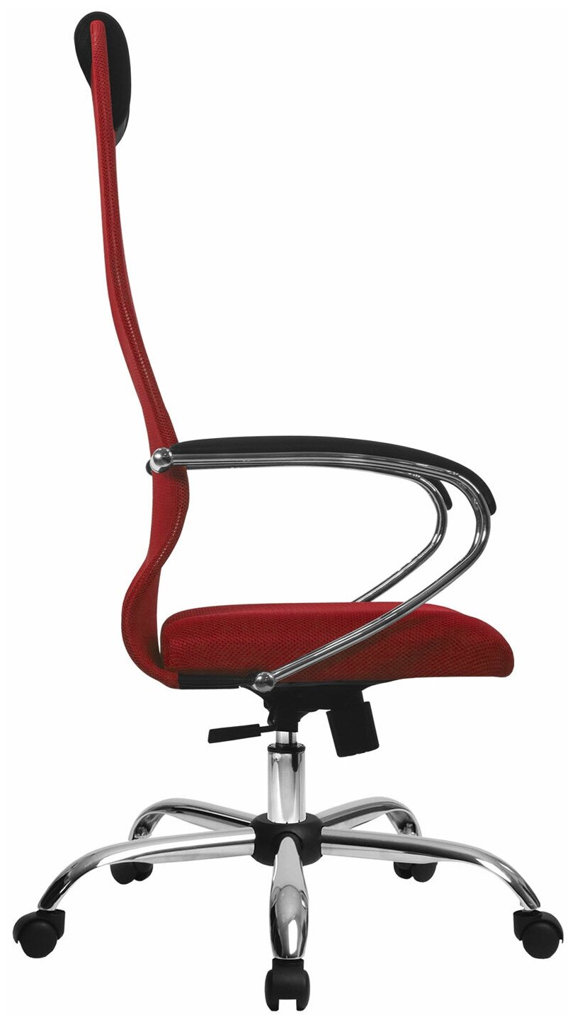 Кресло руководителя компьютерное рабочее офисное / для дома Метта Su-b-8 хром, ткань-сетка, сиденье мягкое, красное