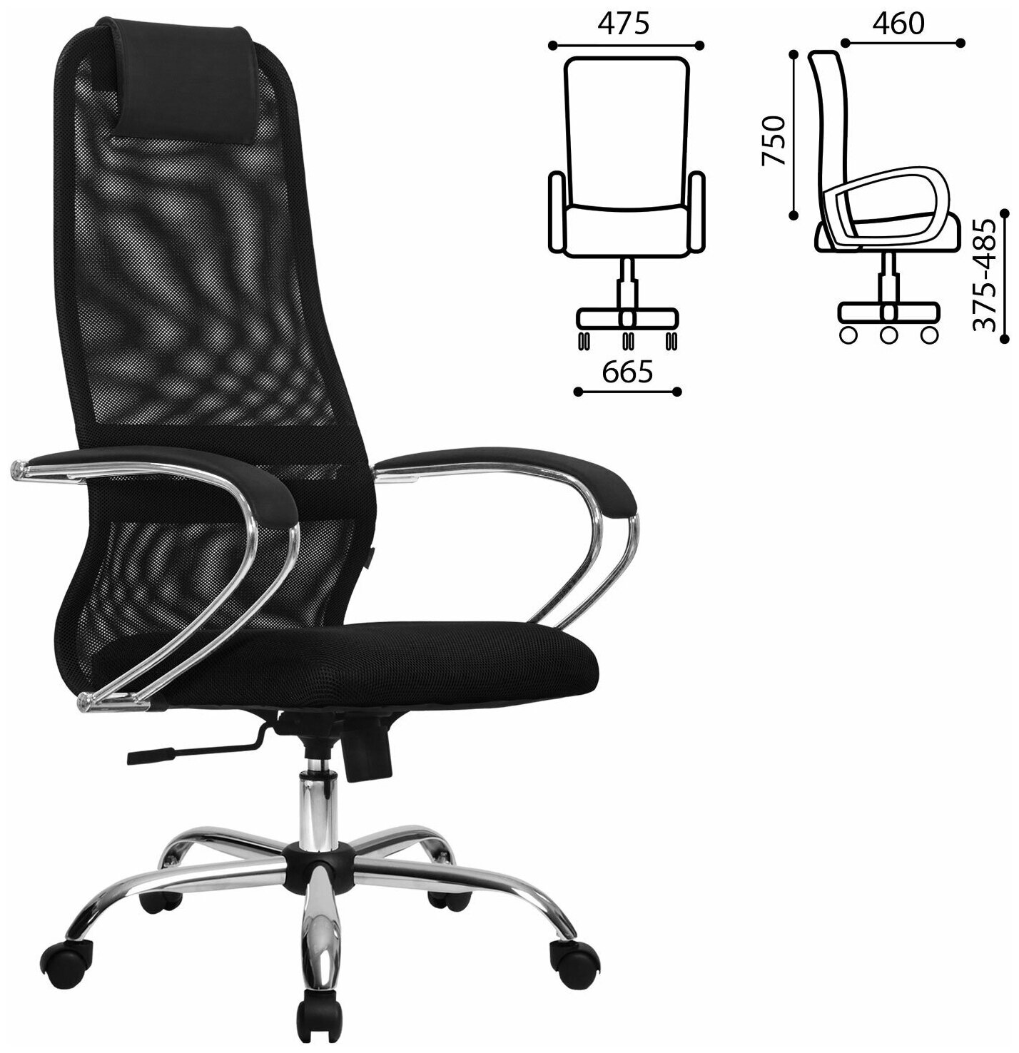 Кресло руководителя Метта SU-BK-8 CH, ткань-сетка черная №20, спинка-сетка, топ-ган (101/003)