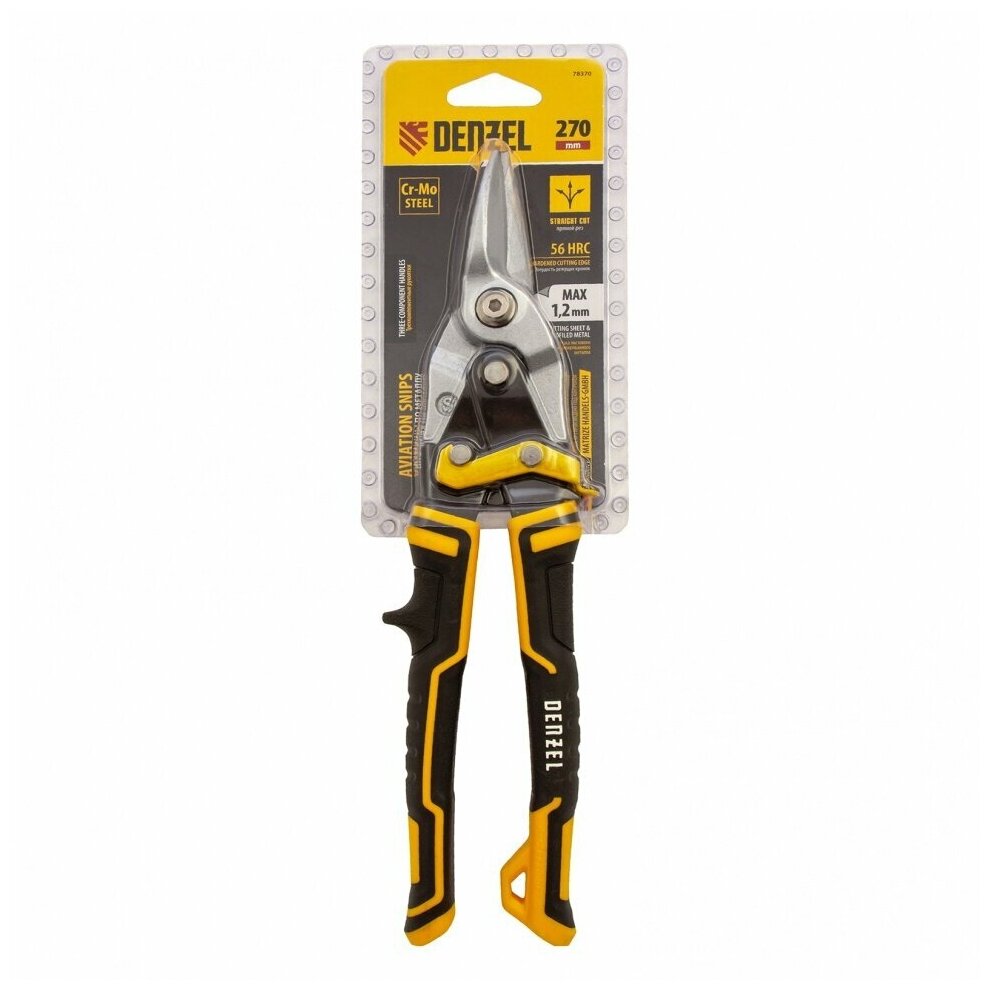 Купить Ножницы по металлу, 270 мм, прямой рез, сталь-CrMo, трехкомпонентные рукоятки, Denzel