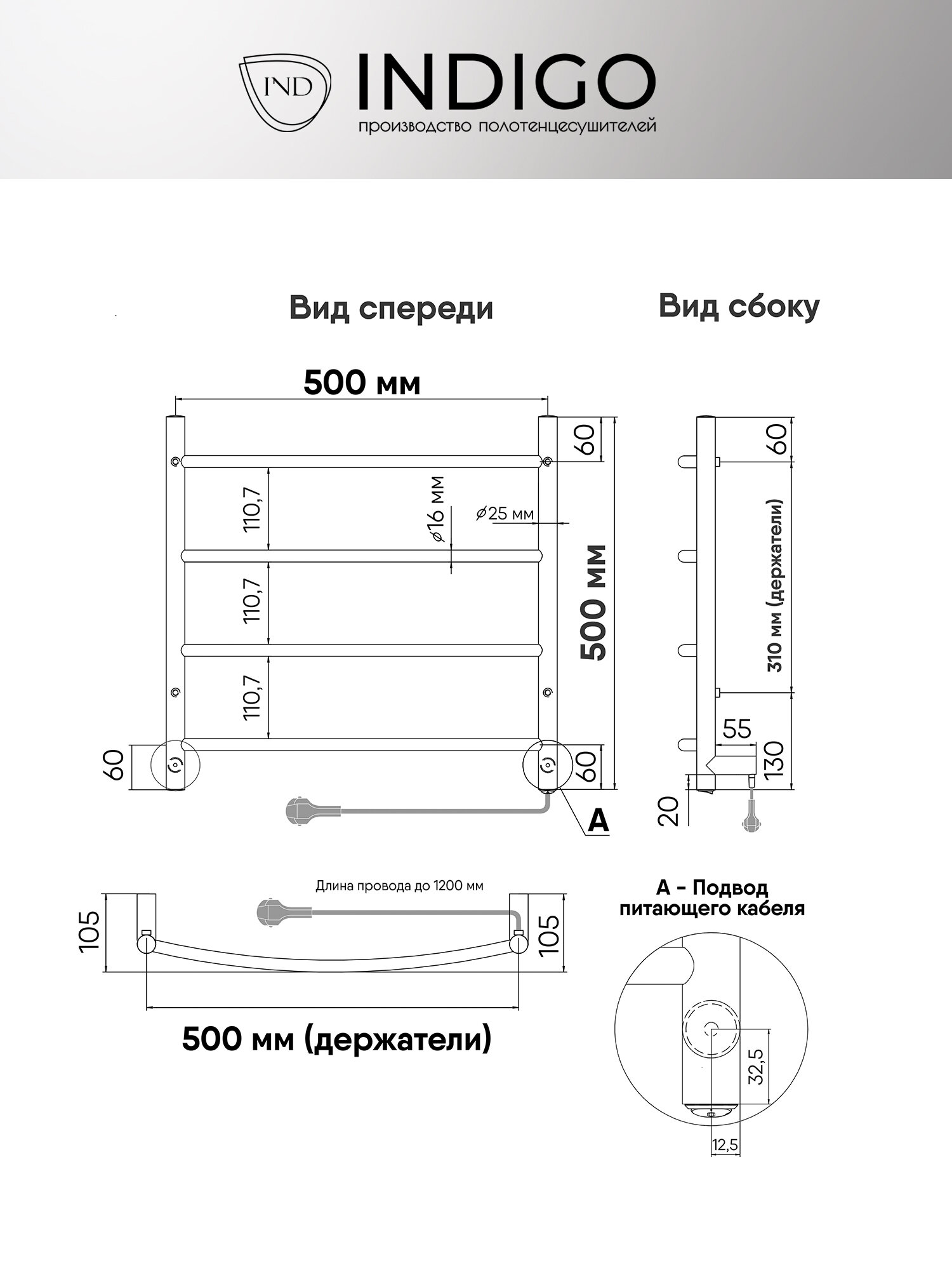 СохранитьIndigo Электрический полотенцесушитель INDIGO LCAE50-50BRR ARC без полочки, черный интересное: