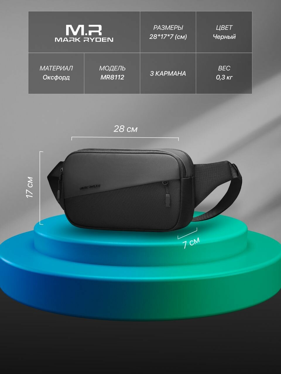 Сумка мужcкая через плечо MARK RYDEN MR8112. Поясная сумка спортивная, барсетка мужская, сумка кросс боди, сумка бананка для мужчин и подростков, спортивная, корпоративные подарки на Новый Год, распродажа черная пятница