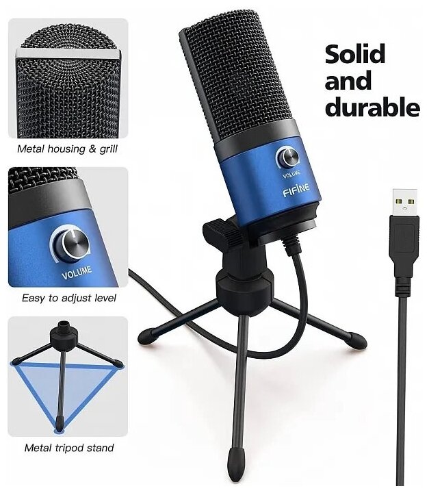 Конденсаторный студийный USB-микрофон Fifine K669 (компьютерный, игровой, для стримов, для конференций, Blue)