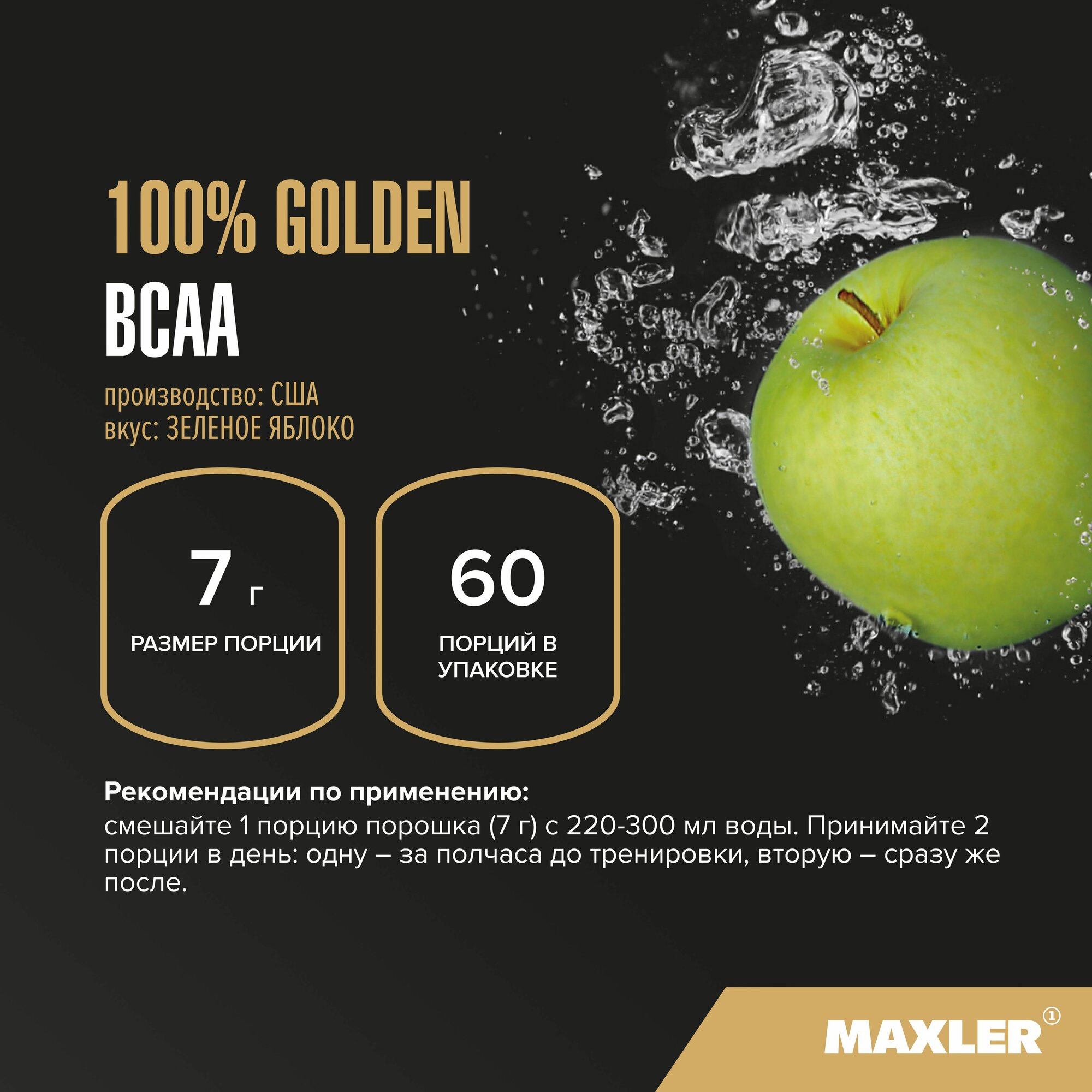 Аминокислоты Maxler 100% Golden BCAA - Зеленое яблоко, 210г, БЦАА в соотношении 2:1:1, В форме порошка - 30 порций