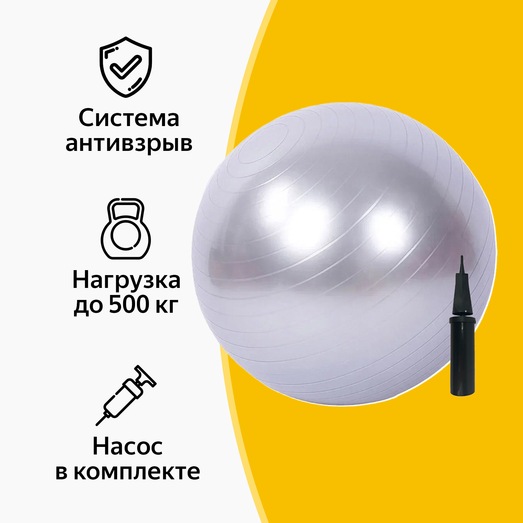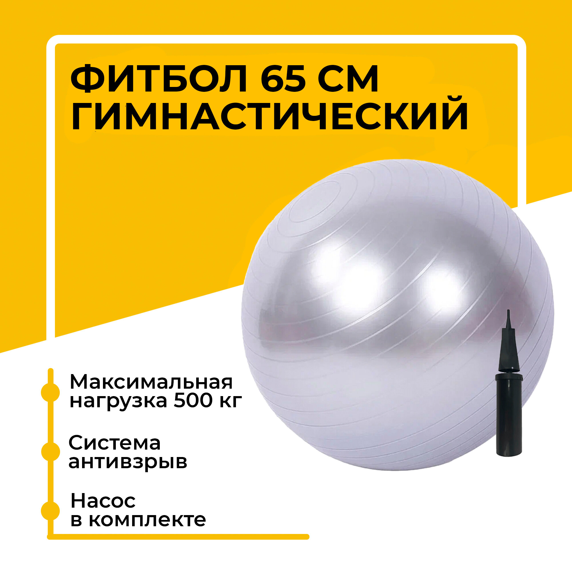 Фитбол, гимнастический мяч, серебряный, 65 см интересное:
