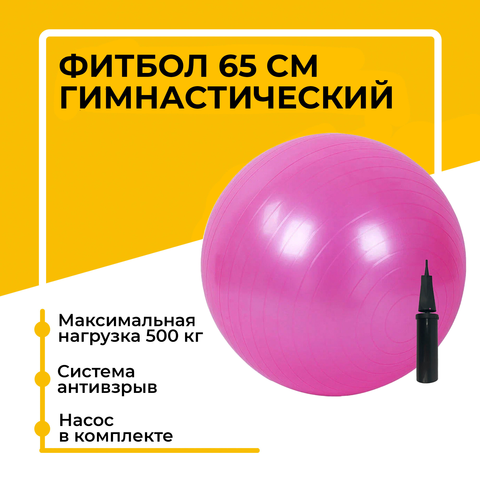 Фитбол, гимнастический мяч для занятий спортом, розовый, 65 см интересное: