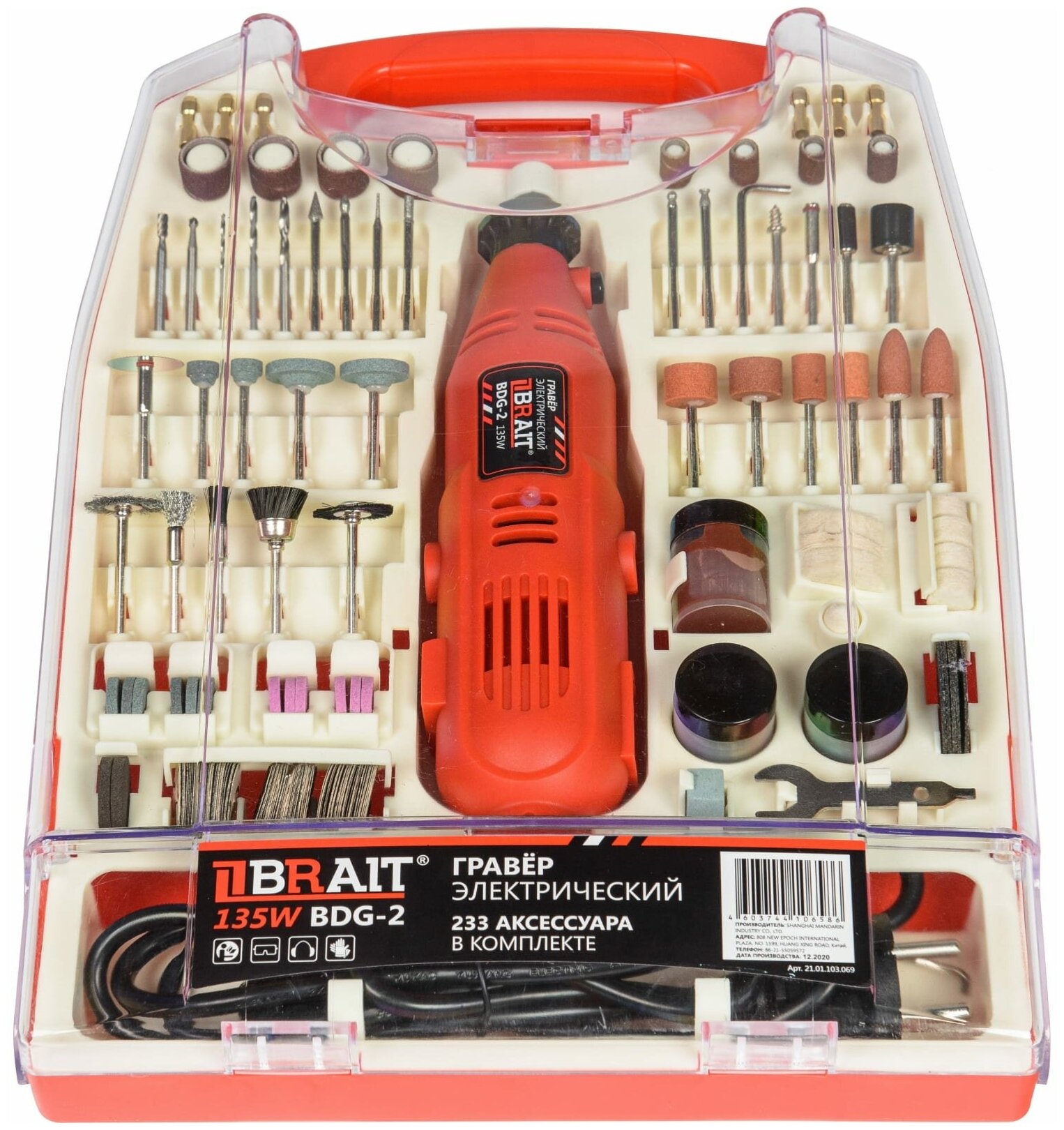 Гравер электрический Brait BDG-2 (135 Вт, кейс, гибкий вал, 233 предмета)