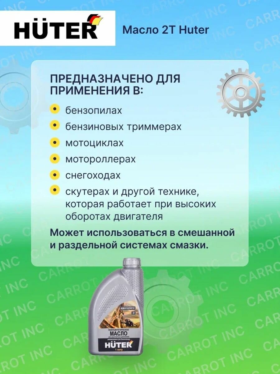 | Отзыв: | Масло от производителя техники Huter и рекомендовано им для электроприборов с 2Т двигателями. |