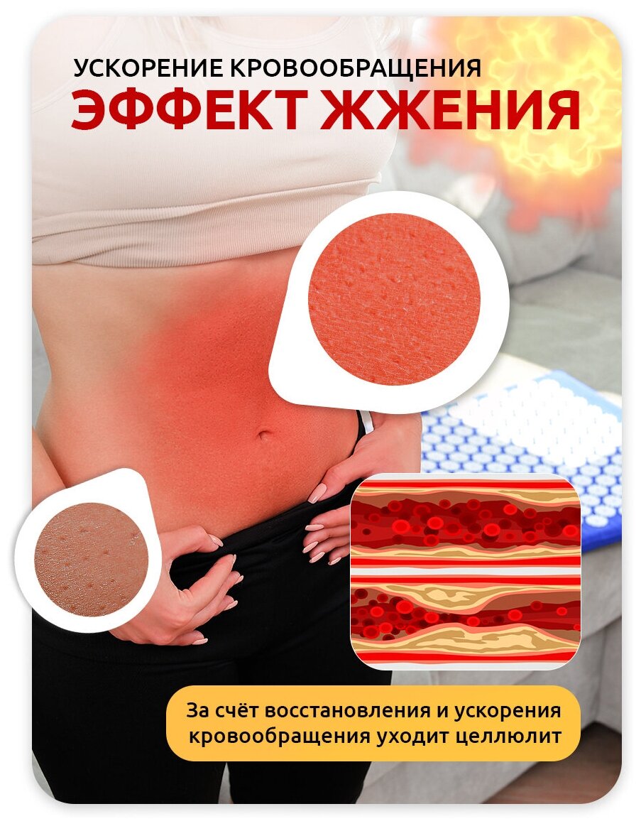 Суть процесса, раздражить поверхностные покровы кожи, и обеспечить повышенную циркуляцию крови, что само по себе позитивно для организма. С этим иппликатор справляется! С валиком под шею нужно быть аккуратнее, тк он стимулирует кровоток к голове, это не всем показано и полезно. На нем нужно лежать не более 5-7 минут. По ощущениям. В целом товар хороший. Справляется. |