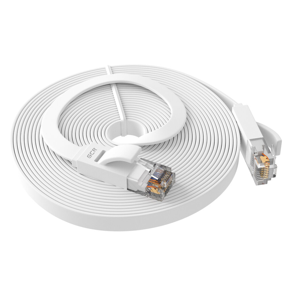 Патч-корд 20м GCR PROF плоский UTP cat.6 10 Гбит/с RJ45 LAN компьютерный кабель для интернета медный контакты 24K GOLD (GCR-LNC62) белый