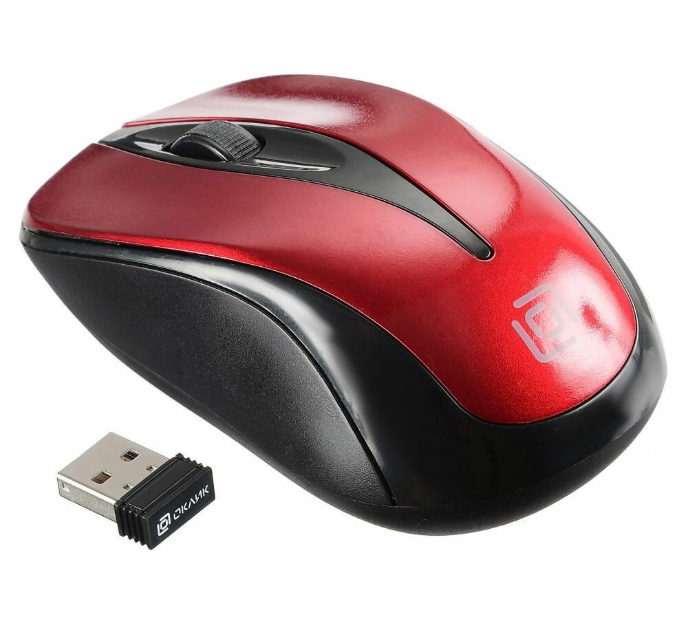 Мышь OKLICK 675MW черный/красный, оптическая (800dpi), беспроводная, USB (2 кнопки)