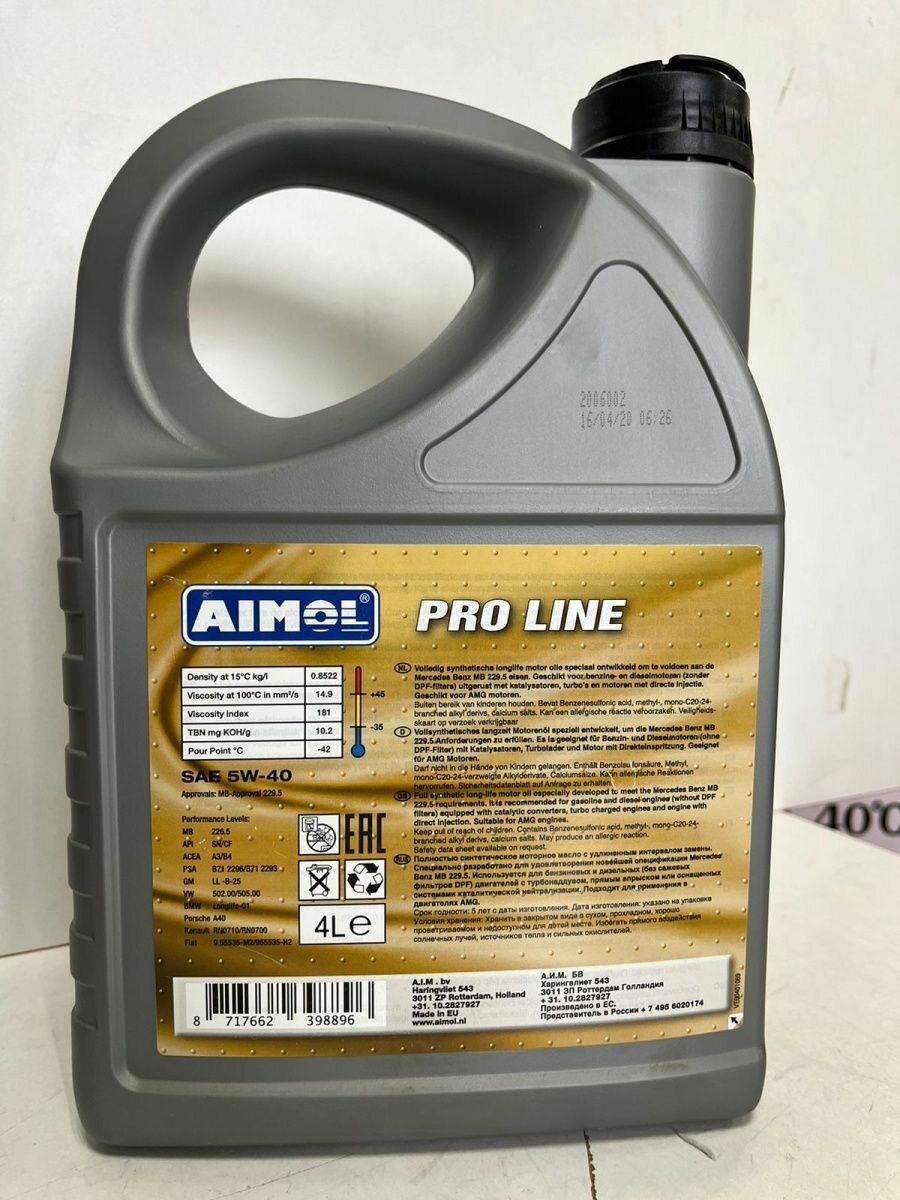 AIMOL PRO LINE 5W-40 Масло моторное, Синтетическое, 4 л