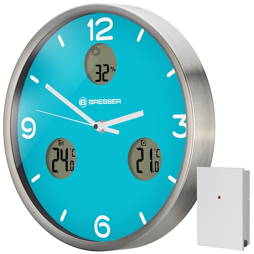 Купить Bresser Часы настенные Bresser MyTime io NX Thermo/Hygro, 30 см, голубые