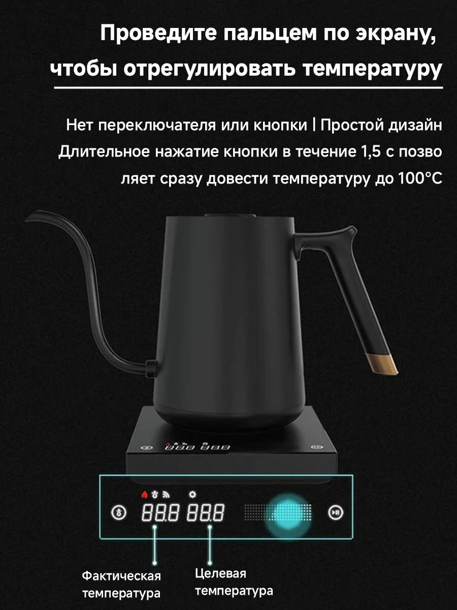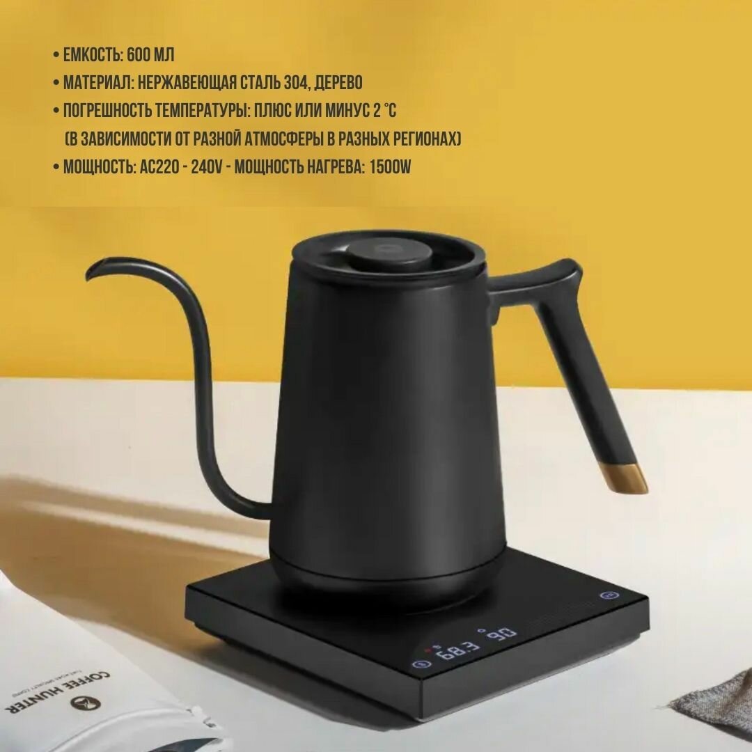Чайник электрический Timemore Fish Smart, черный, 600 мл. интересное: