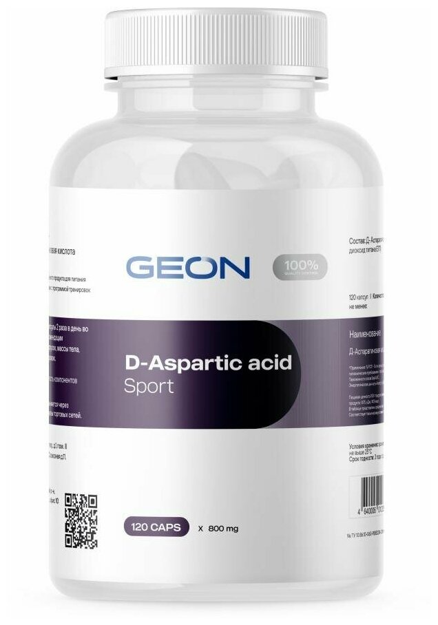 Д-аспарагиновая кислота GEON D-Aspartic acid sport, 120 капсул