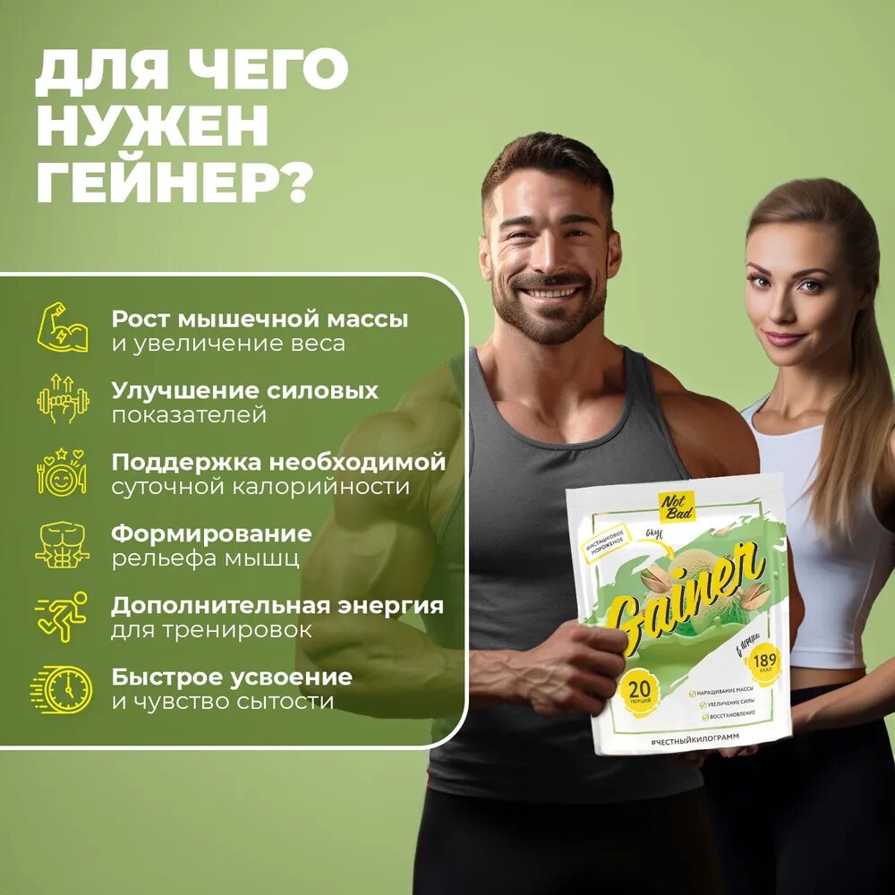 Гейнер NotBad с быстрыми углеводами, 1000 г, фисташковое мороженое