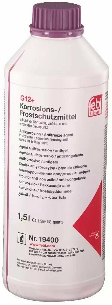 Антифриз Сиреневый 19400 Концентрат 1.5L G12plus Mb 325.3 Gm 1825(99)M Vw Tl774f/Frd Ese-M978b4h-A Febi арт. 19400