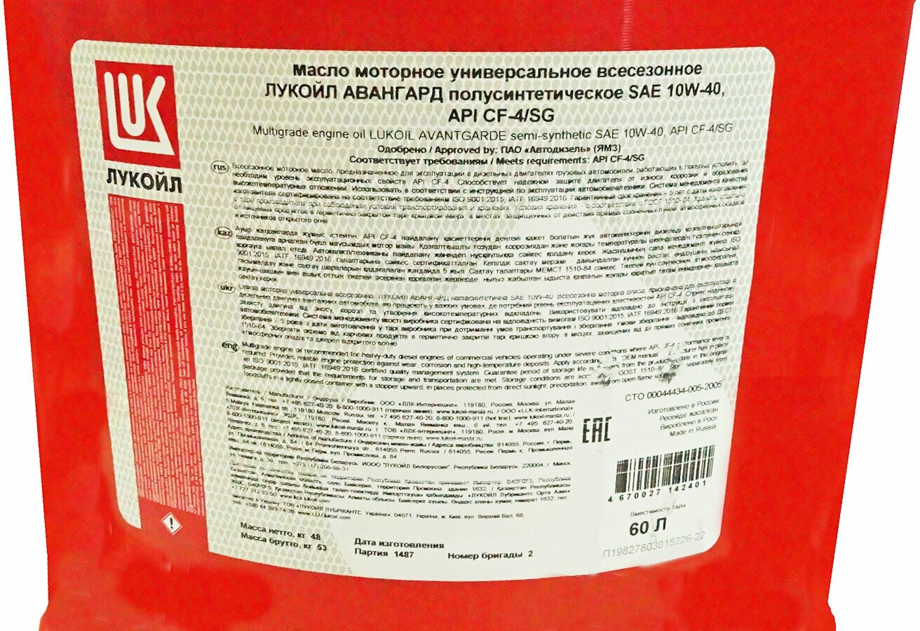 LUKOIL 19493 Масло Л авангард, 10W40, CF-4/SG 50л моторное (полусинт) 1шт