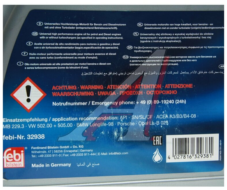 Febi Febi^32938 Масло Моторное Sae 5w40 (5,0 L) Синтетическое (Oil)