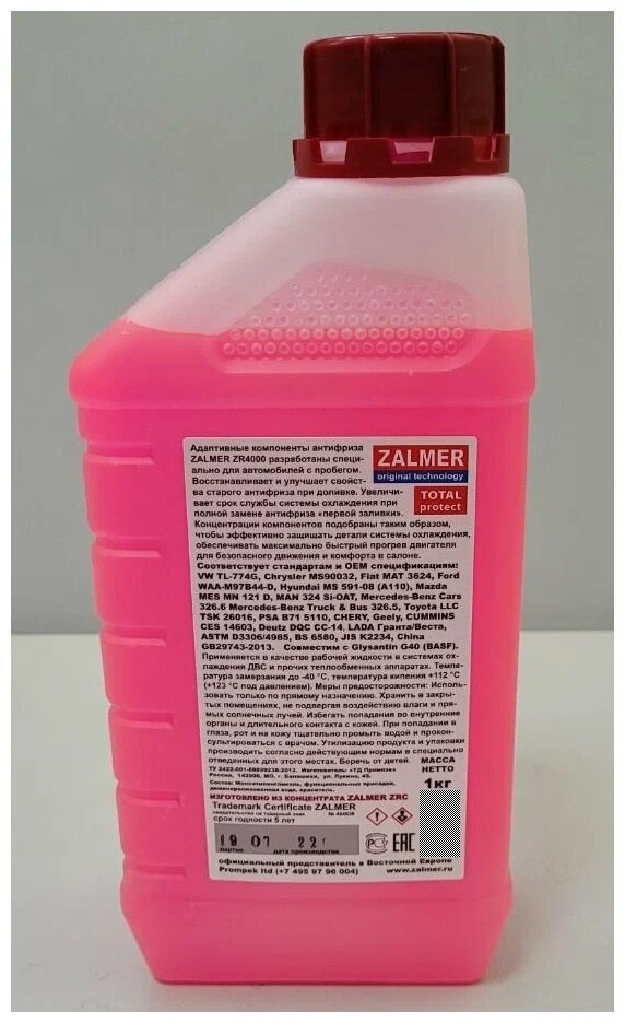 Ниже Вы можете прочитать отзывы на Антифриз ZALMER ZR4000 G12++ красный 1кг, ознакомится с подробными характеристиками, посмотреть интересные обзоры и фотографии на Антифриз ZALMER ZR4000 G12++ красный 1кг.