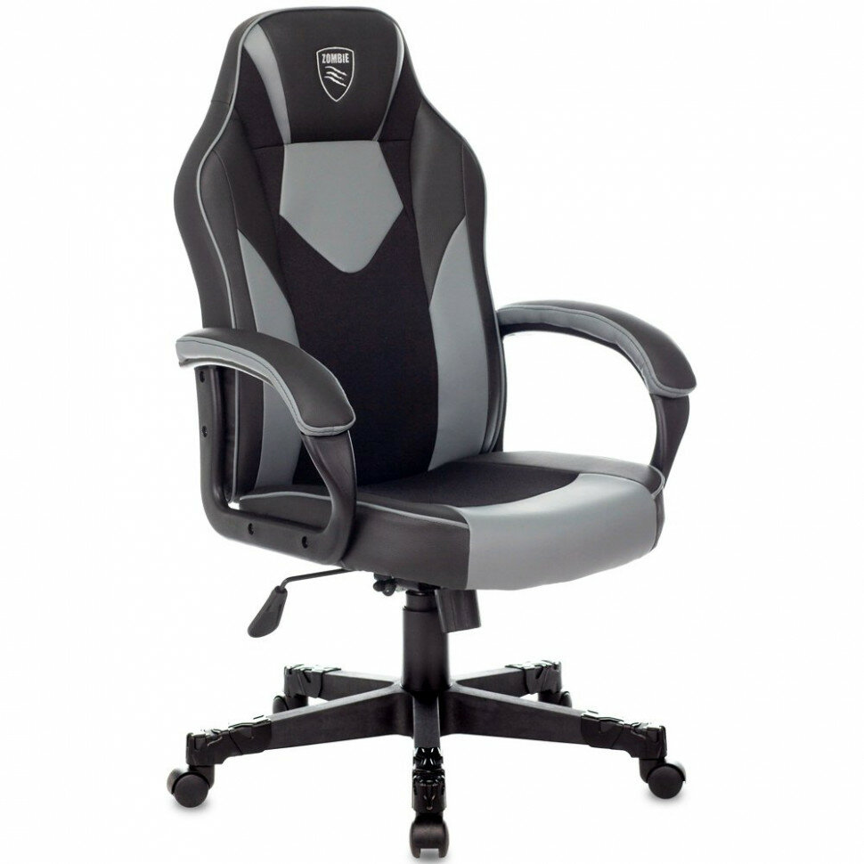 Кресло игровое ZOMBIE GAME 17, на колесиках, эко.кожа/ткань, черный/серый [zombie game 17 grey]