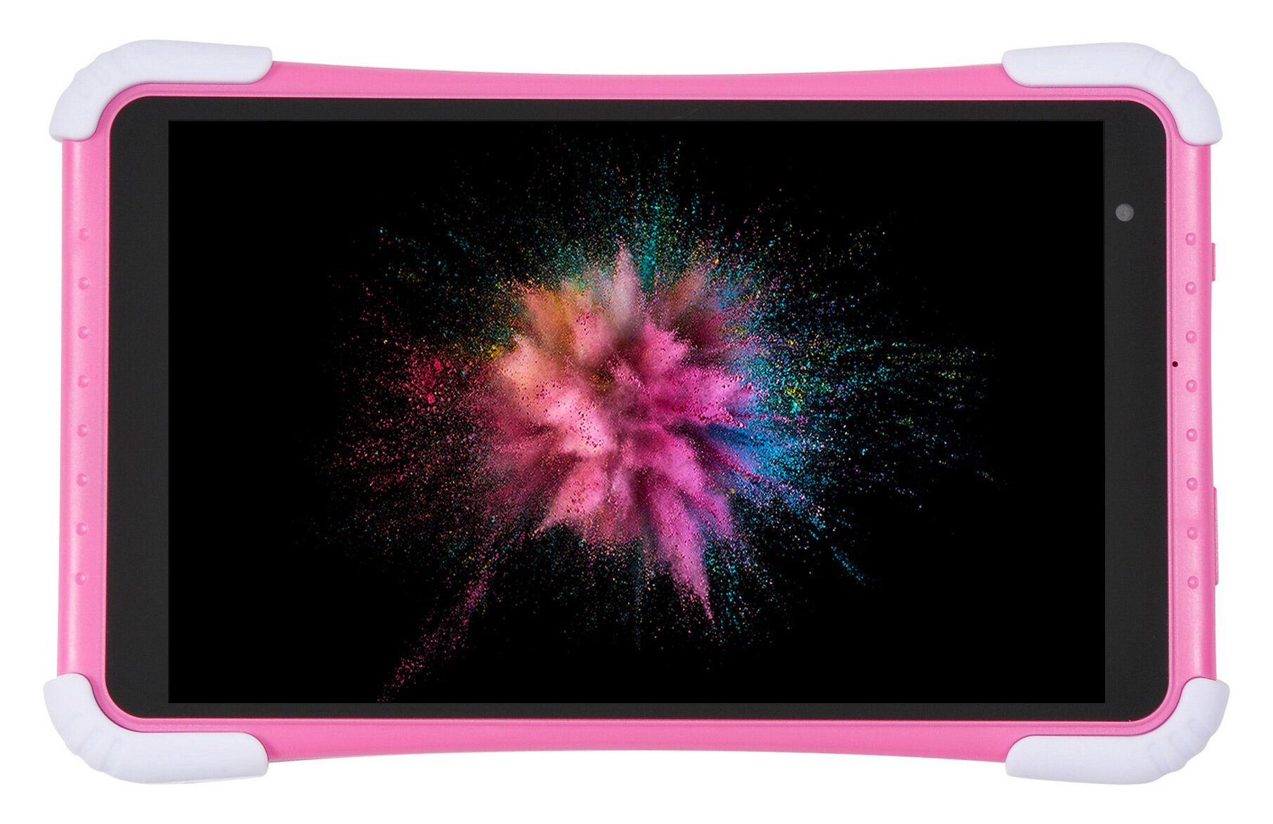 | Плюсы: | Диагональ экрана 8 дюймов, яркий розовый цвет корпуса, прорезиненные углы, контрастное изображение, детский контент. |